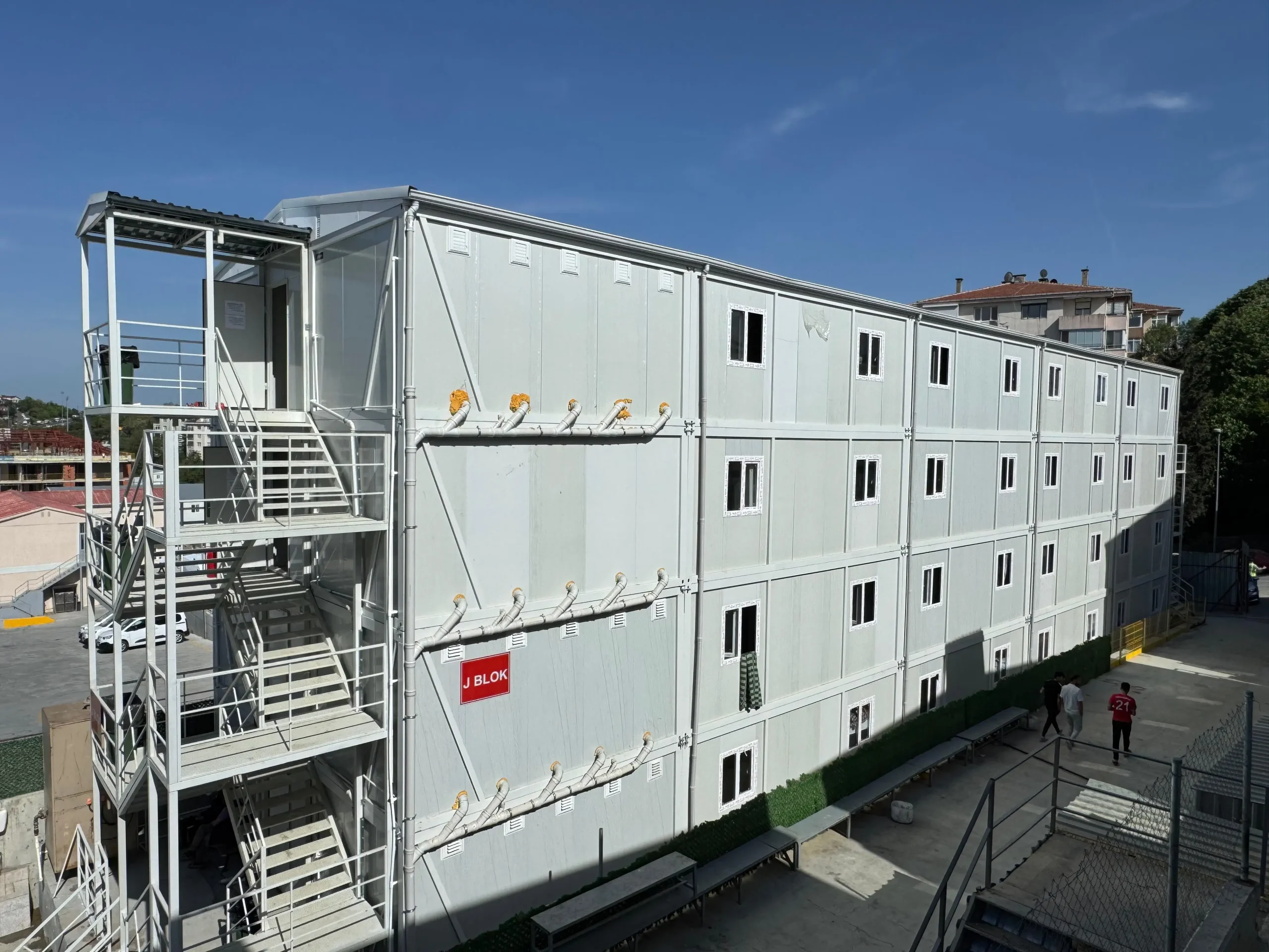 Construite în conformitate cu standarde ridicate de durabilitate, clădirile container sunt concepute pentru a oferi spații de locuit confortabile și sigure în proiecte cu forță de muncă intensivă. În timp ce dormitoarele sunt planificate pentru a satisface nevoile de odihnă și cazare ale angajaților în cel mai eficient mod, clădirea de birouri oferă un mediu de lucru funcțional pentru managementul pe teren.