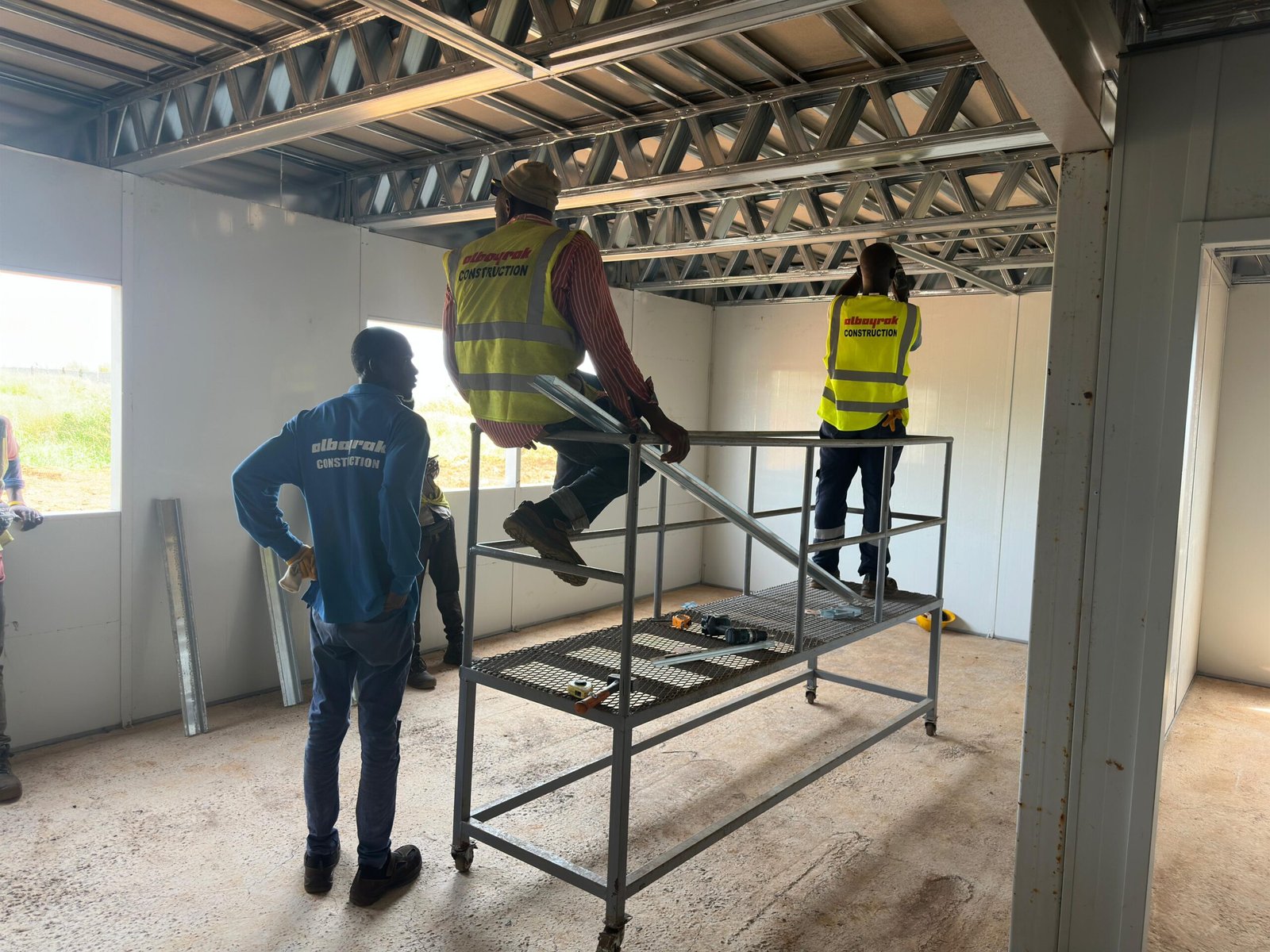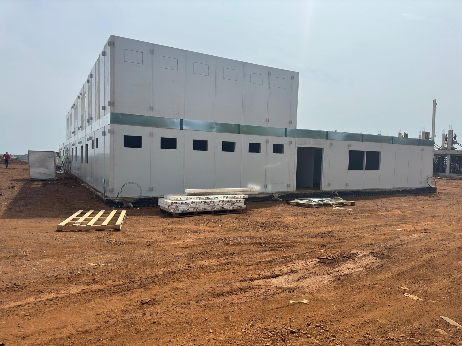 Clădirile de șantier prefabricate create în cadrulproiectului Aeroportului Internațional Guineea sunt concepute pentru a asigura munca eficientă a inginerilor, a echipelor de pe teren și a unităților de gestionare și, de asemenea, contribuie la progresul procesului de construcție în conformitate cu calendarul planificat. Clădirile prefabricate, produse cu o abordare modulară, au permis accelerarea procesului de proiect și creșterea eficienței operaționale datorită timpilor rapizi de asamblare .